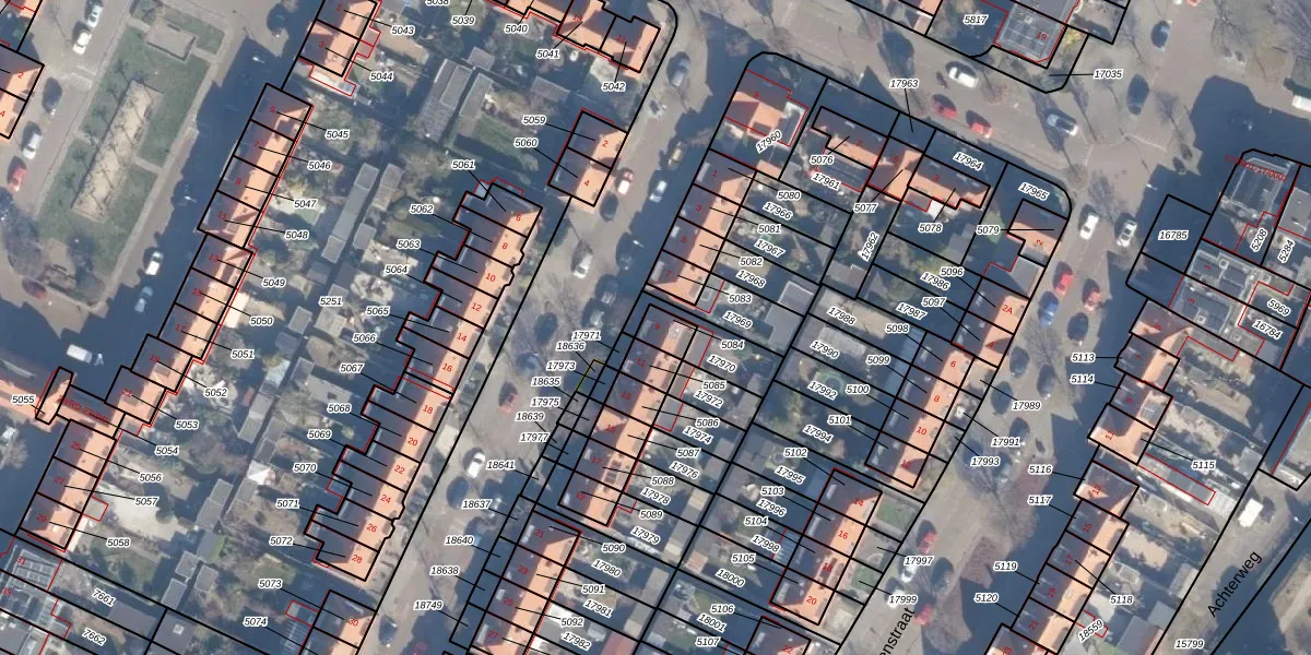 Gebruik de zoekbalk of klik op een perceel voor informatie over de adressen binnen dit perceel.