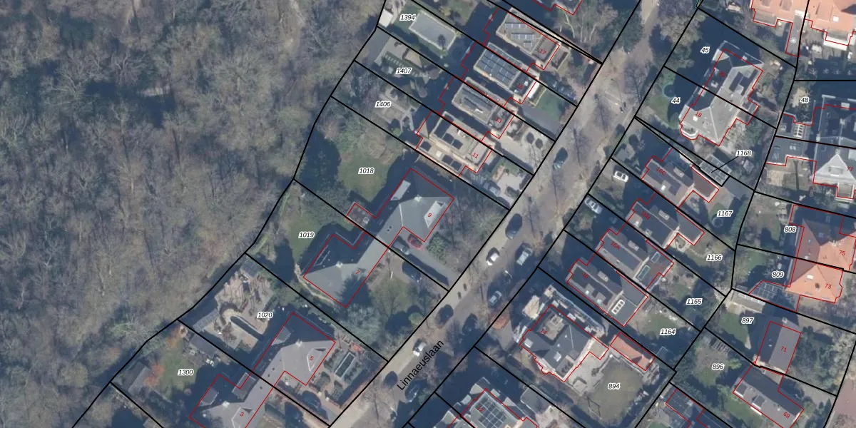 Het perceel waarop Linnaeuslaan 9 staat heeft een oppervlakte van 1050 m². Dit is een zeer groot perceel. De perceeloppervlakte wordt geregistreerd door het Kadaster. Gedetailleerde informatie over de maten van dit perceel kunt u vinden in het rapport Kadastrale kaart met maatvoering van Linnaeuslaan 9.