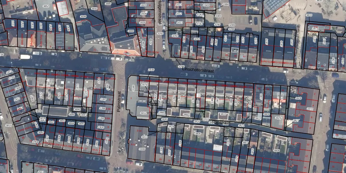Linschotenstraat 16-RD is gelegen op kadastraal perceel HLM01K1392. Deze kadastrale aanduiding is uniek en wordt gebruikt door het Kadaster om eigendomsrechten en andere zakelijke rechten vast te leggen. Het perceel maakt onderdeel uit van de kadastrale gemeente Haarlem.