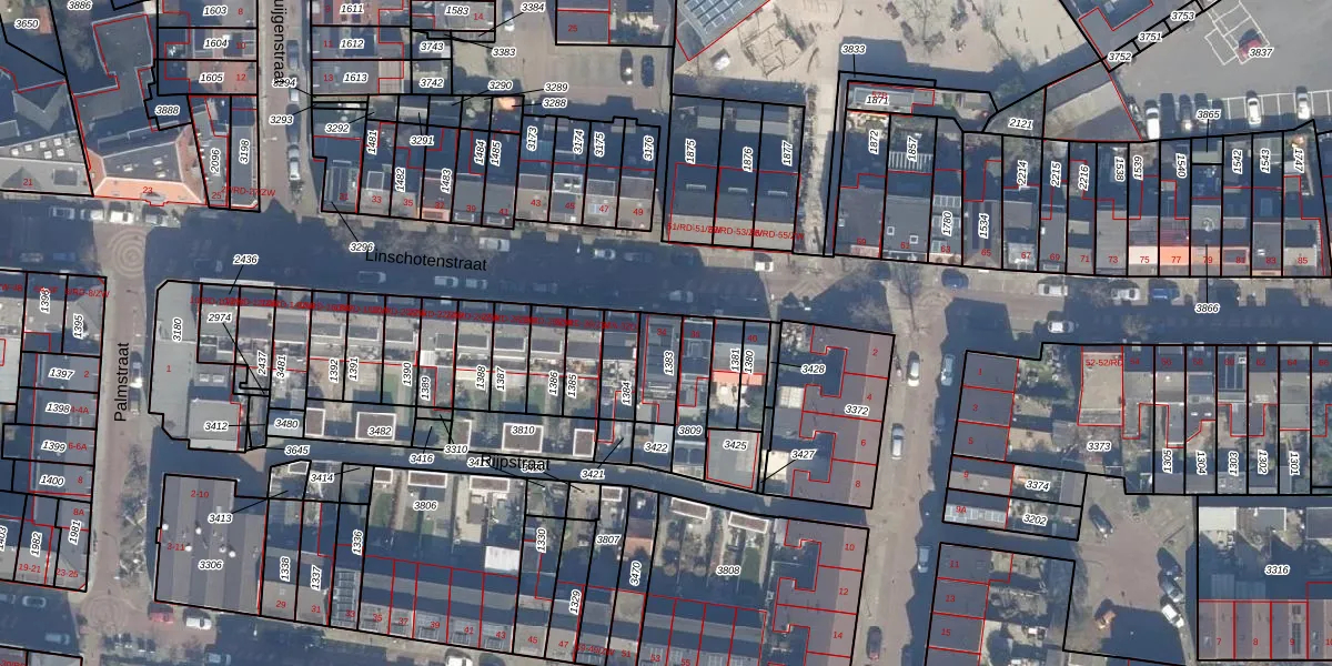 Het perceel waarop Linschotenstraat 34 staat heeft een oppervlakte van 104 m². Dit is een middelgroot perceel. De perceeloppervlakte wordt geregistreerd door het Kadaster. Gedetailleerde informatie over de maten van dit perceel kunt u vinden in het rapport Kadastrale kaart met maatvoering van Linschotenstraat 34.