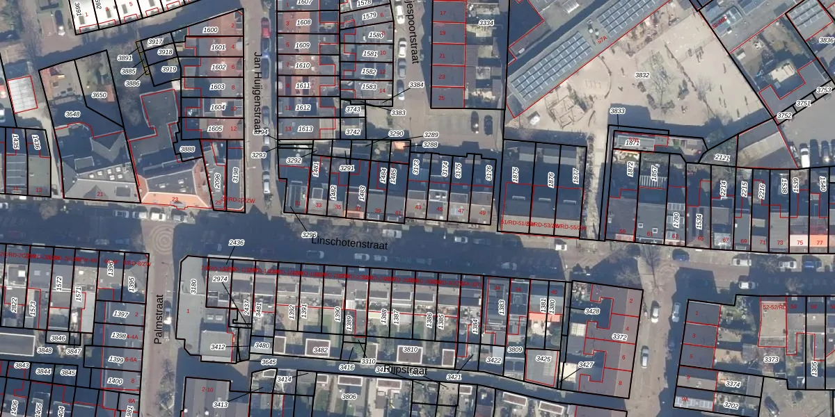 Het perceel waarop Linschotenstraat 43 staat heeft een oppervlakte van 81 m². Dit is een klein perceel. De perceeloppervlakte wordt geregistreerd door het Kadaster. Gedetailleerde informatie over de maten van dit perceel kunt u vinden in het rapport Kadastrale kaart met maatvoering van Linschotenstraat 43.