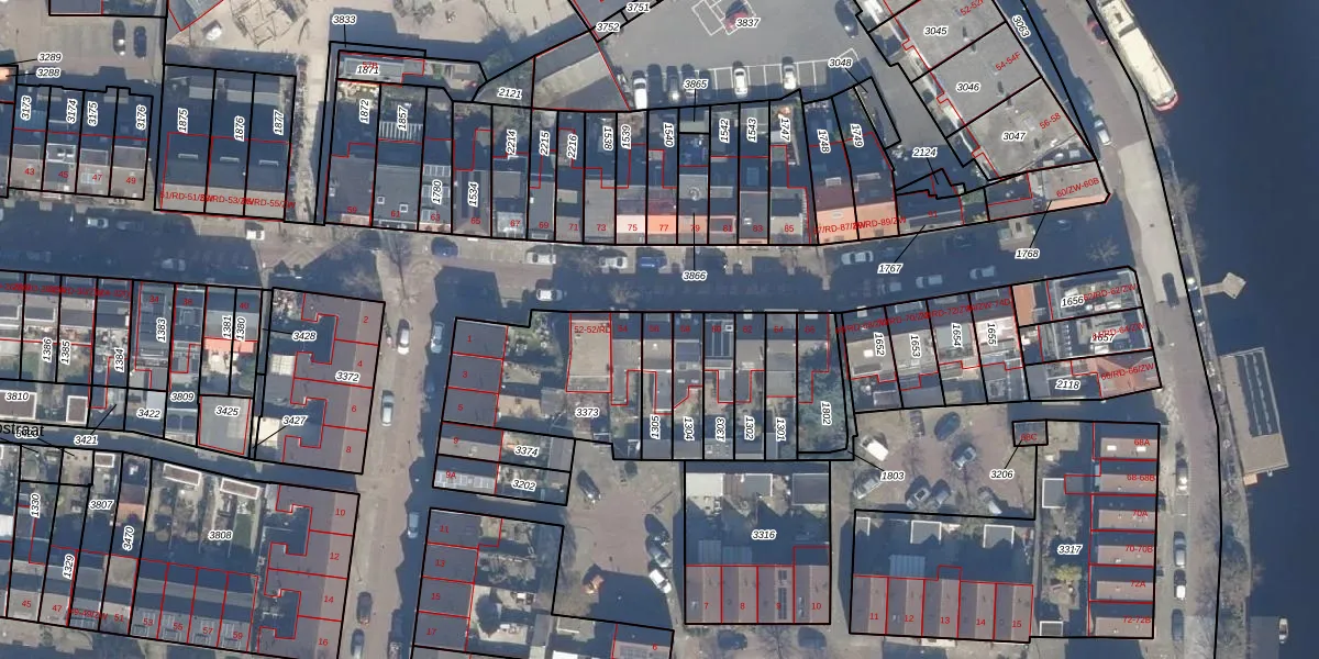 Gebruik de zoekbalk of klik op een perceel voor informatie over de adressen binnen dit perceel.