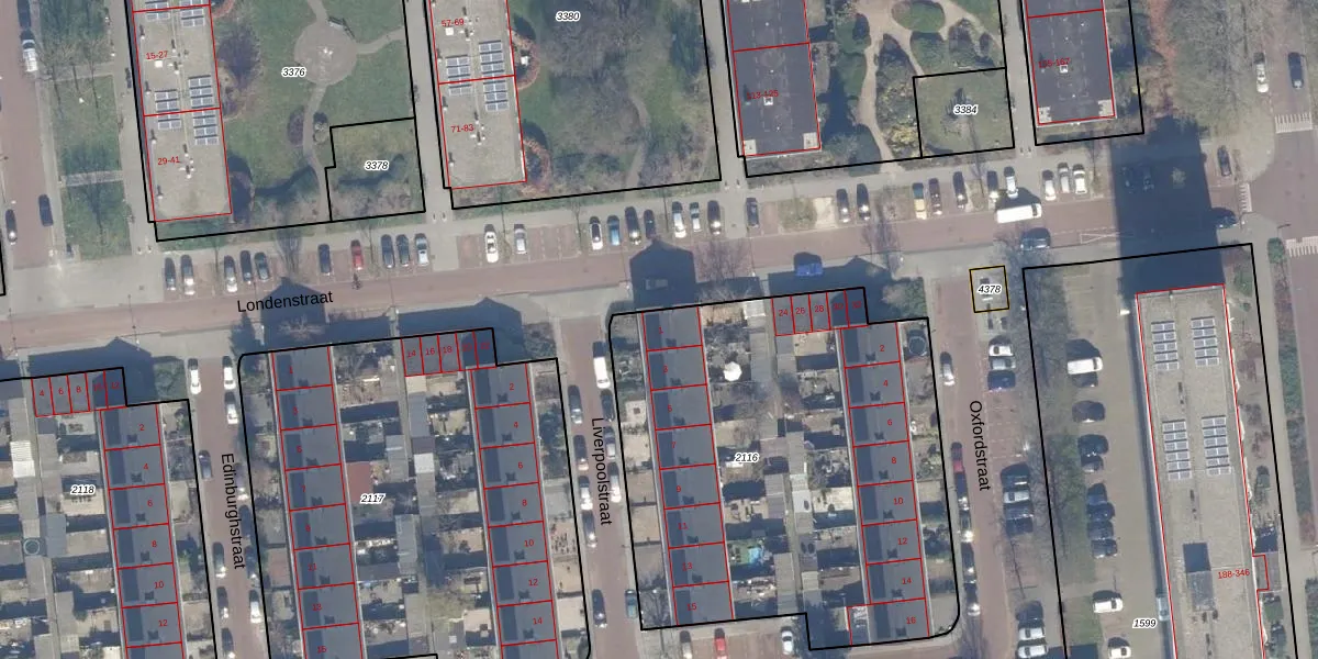 Het perceel waarop Liverpoolstraat 1 staat heeft een oppervlakte van 2410 m². Dit is een zeer groot perceel. De perceeloppervlakte wordt geregistreerd door het Kadaster. Gedetailleerde informatie over de maten van dit perceel kunt u vinden in het rapport Kadastrale kaart met maatvoering van Liverpoolstraat 1.