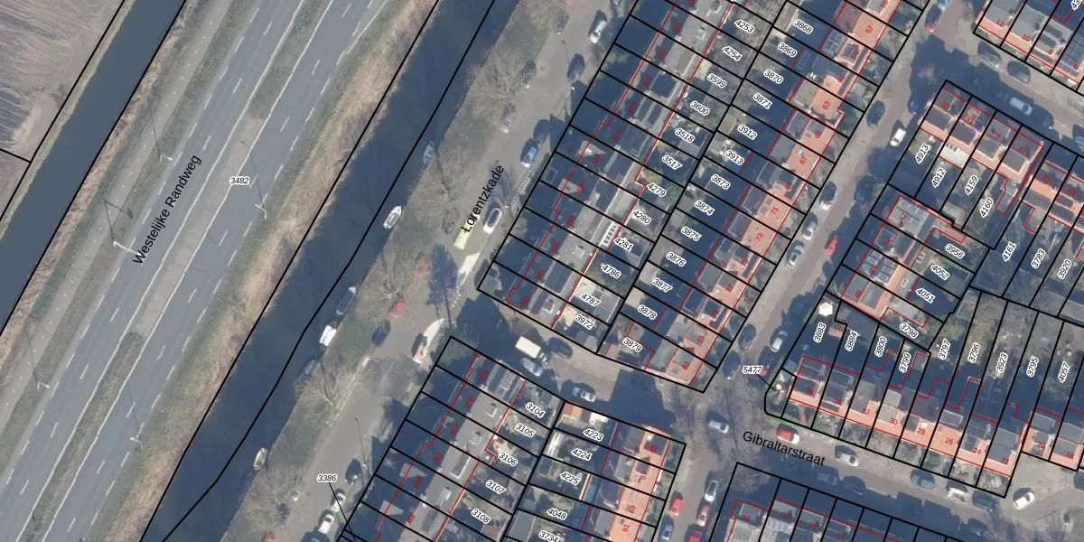 Gebruik de zoekbalk of klik op een perceel voor informatie over de adressen binnen dit perceel.