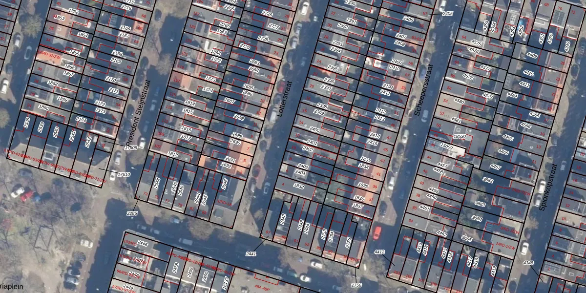 Lotterstraat 10 is gelegen op kadastraal perceel STN01B2402. Deze kadastrale aanduiding is uniek en wordt gebruikt door het Kadaster om eigendomsrechten en andere zakelijke rechten vast te leggen. Het perceel maakt onderdeel uit van de kadastrale gemeente Schoten.