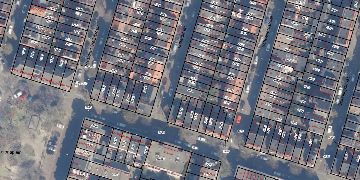 Gebruik de zoekbalk of klik op een perceel voor informatie over de adressen binnen dit perceel.