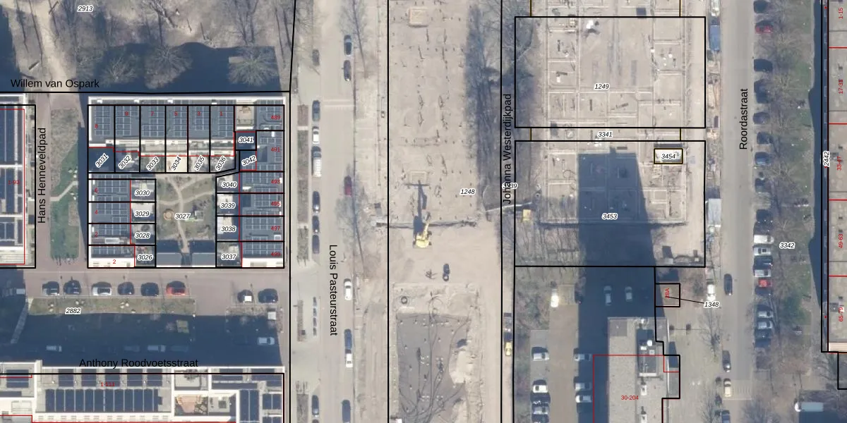 Het perceel waarop Louis Pasteurstraat 152 staat heeft een oppervlakte van 3287 m². Dit is een zeer groot perceel. De perceeloppervlakte wordt geregistreerd door het Kadaster. Gedetailleerde informatie over de maten van dit perceel kunt u vinden in het rapport Kadastrale kaart met maatvoering van Louis Pasteurstraat 152.