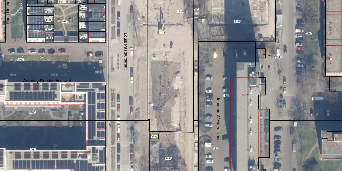Het perceel waarop Louis Pasteurstraat 16 staat heeft een oppervlakte van 3287 m². Dit is een zeer groot perceel. De perceeloppervlakte wordt geregistreerd door het Kadaster. Gedetailleerde informatie over de maten van dit perceel kunt u vinden in het rapport Kadastrale kaart met maatvoering van Louis Pasteurstraat 16.