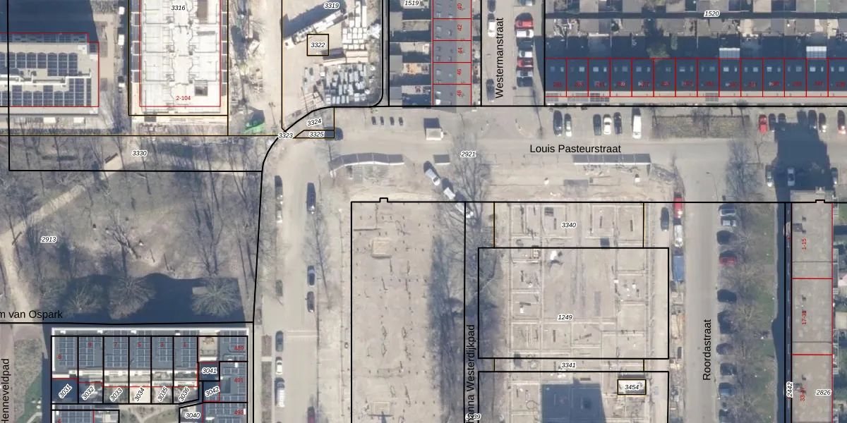 Het perceel waarop Louis Pasteurstraat 178 staat heeft een oppervlakte van 3287 m². Dit is een zeer groot perceel. De perceeloppervlakte wordt geregistreerd door het Kadaster. Gedetailleerde informatie over de maten van dit perceel kunt u vinden in het rapport Kadastrale kaart met maatvoering van Louis Pasteurstraat 178.