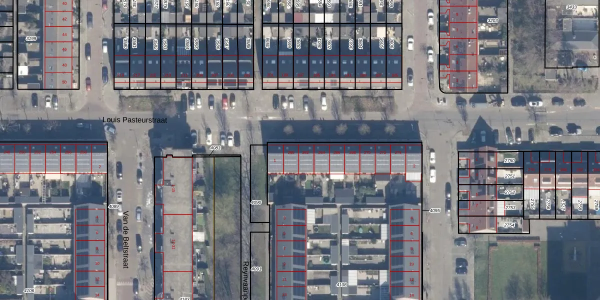 Het perceel waarop Louis Pasteurstraat 262 staat heeft een oppervlakte van 4865 m². Dit is een zeer groot perceel. De perceeloppervlakte wordt geregistreerd door het Kadaster. Gedetailleerde informatie over de maten van dit perceel kunt u vinden in het rapport Kadastrale kaart met maatvoering van Louis Pasteurstraat 262.