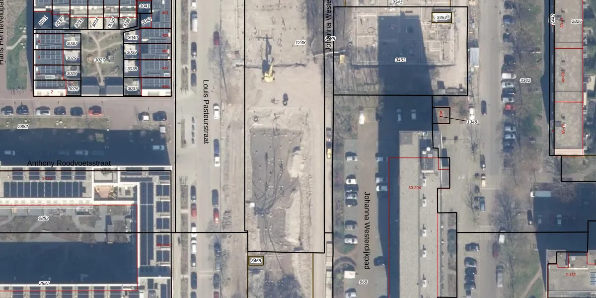 Het perceel waarop Louis Pasteurstraat 46 staat heeft een oppervlakte van 3287 m². Dit is een zeer groot perceel. De perceeloppervlakte wordt geregistreerd door het Kadaster. Gedetailleerde informatie over de maten van dit perceel kunt u vinden in het rapport Kadastrale kaart met maatvoering van Louis Pasteurstraat 46.