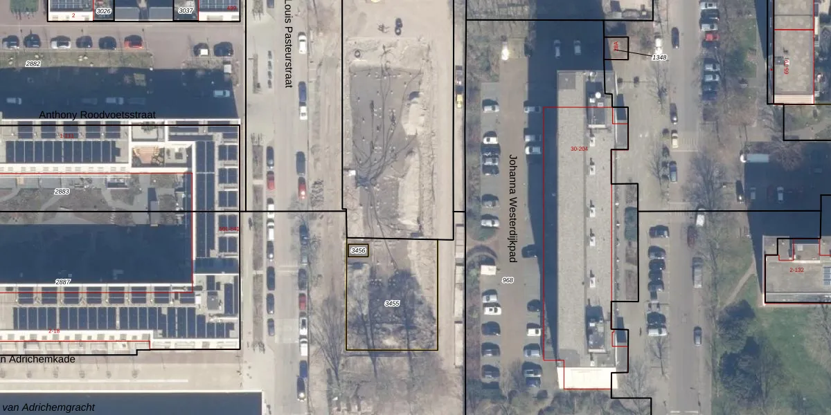 Het perceel waarop Louis Pasteurstraat 52 staat heeft een oppervlakte van 3287 m². Dit is een zeer groot perceel. De perceeloppervlakte wordt geregistreerd door het Kadaster. Gedetailleerde informatie over de maten van dit perceel kunt u vinden in het rapport Kadastrale kaart met maatvoering van Louis Pasteurstraat 52.