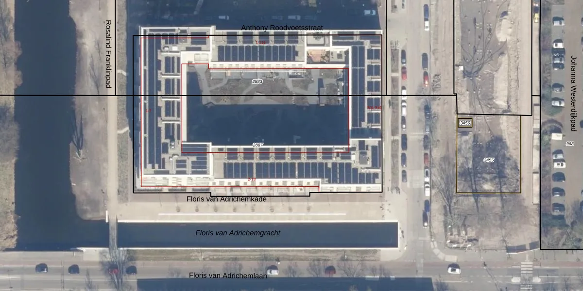 Het perceel waarop het adres ligt is HLM02-Q-2887. De afkorting 'HLM02' staat voor kadastrale gemeente Haarlem. Het perceel is met 2885 m² relatief groot. Het gemiddelde ligt in de kadastrale gemeente Haarlem op 1123,97 m². Het grootste perceel in de kadastrale gemeente is 46,4 ha. Het kleinste perceel heeft een oppervlakte van 0 m². Op het perceel zijn 53 adressen aanwezig. In de Basisregistratie Kadaster (BRK) werden de grenzen van het perceel geregistreerd op 22-03-2024.