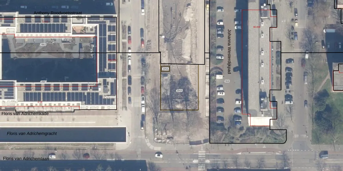 Het adres is gelegen op perceel 3455 in de sectie Q en de kadastrale gemeente Haarlem. De kadastrale aanduiding is aldus HLM02-Q-3455. De gemiddelde perceelgrootte in Haarlem is 1123,97 m². Dit perceel is kleiner: de perceeloppervlakte bedraagt 576 m². De grootste perceeloppervlakte in de kadastrale gemeente is 46,4 ha. De kleinste oppervlakte bedraagt 0 m². Er zijn 18 adressen aanwezig op het perceel. In de Basisregistratie Kadaster (BRK) werden de grenzen van het perceel geregistreerd op 14-10-2025.