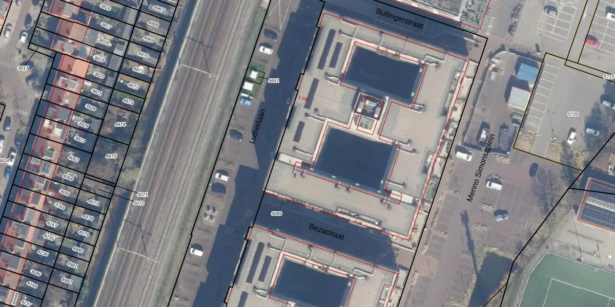 Het perceel waarop Lutherlaan 165 staat heeft een oppervlakte van 7765 m². Dit is een zeer groot perceel. De perceeloppervlakte wordt geregistreerd door het Kadaster. Gedetailleerde informatie over de maten van dit perceel kunt u vinden in het rapport Kadastrale kaart met maatvoering van Lutherlaan 165.