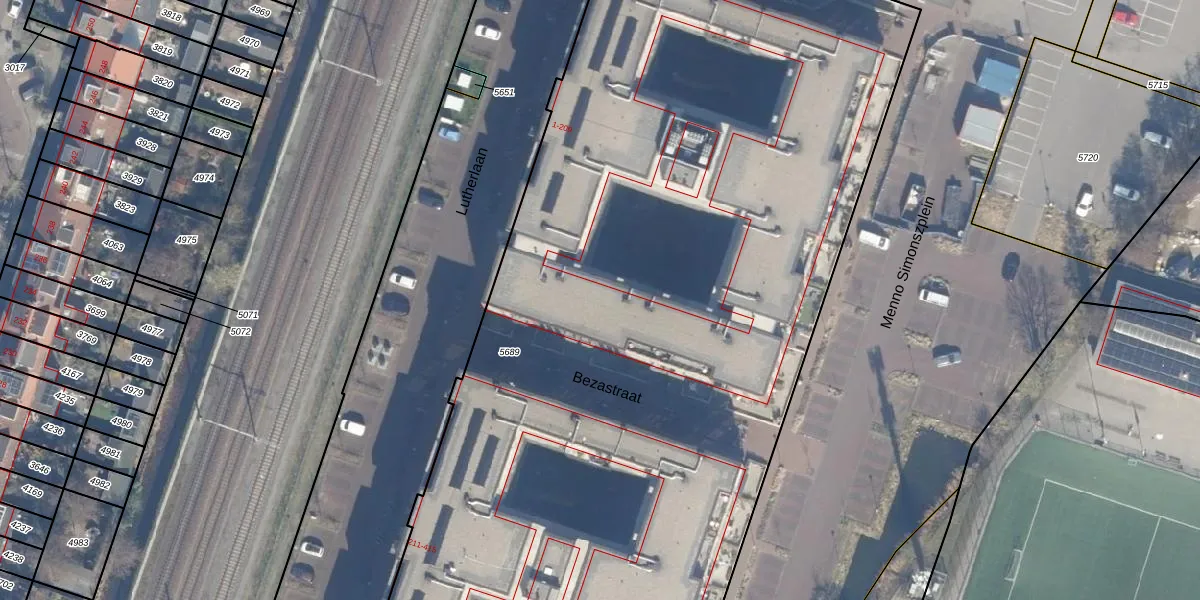 Het perceel waarop Lutherlaan 199 staat heeft een oppervlakte van 7765 m². Dit is een zeer groot perceel. De perceeloppervlakte wordt geregistreerd door het Kadaster. Gedetailleerde informatie over de maten van dit perceel kunt u vinden in het rapport Kadastrale kaart met maatvoering van Lutherlaan 199.