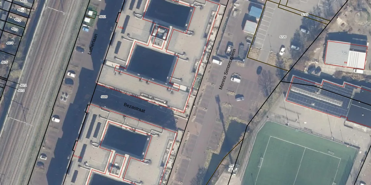 Het perceel waarop Lutherlaan 25 staat heeft een oppervlakte van 7765 m². Dit is een zeer groot perceel. De perceeloppervlakte wordt geregistreerd door het Kadaster. Gedetailleerde informatie over de maten van dit perceel kunt u vinden in het rapport Kadastrale kaart met maatvoering van Lutherlaan 25.
