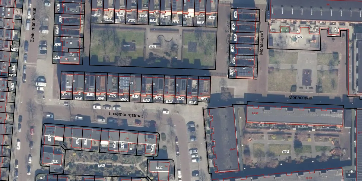 Het perceel waarop Luxemburgstraat 21 staat heeft een oppervlakte van 99 m². Dit is een klein perceel. De perceeloppervlakte wordt geregistreerd door het Kadaster. Gedetailleerde informatie over de maten van dit perceel kunt u vinden in het rapport Kadastrale kaart met maatvoering van Luxemburgstraat 21.