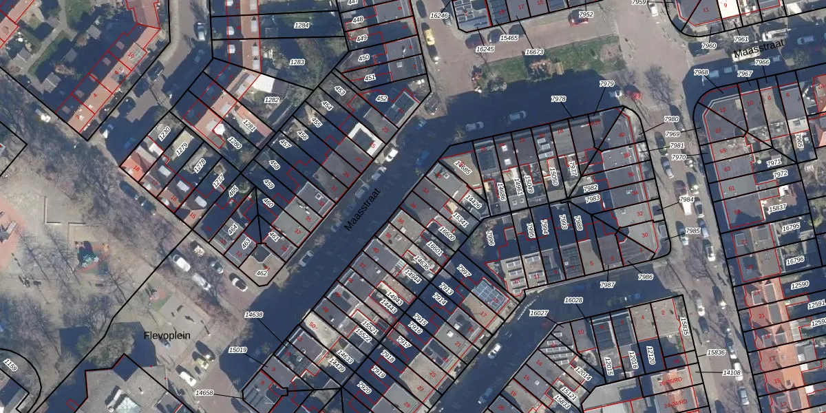 Het perceel waarop Maasstraat 34 staat heeft een oppervlakte van 83 m². Dit is een klein perceel. De perceeloppervlakte wordt geregistreerd door het Kadaster. Gedetailleerde informatie over de maten van dit perceel kunt u vinden in het rapport Kadastrale kaart met maatvoering van Maasstraat 34.