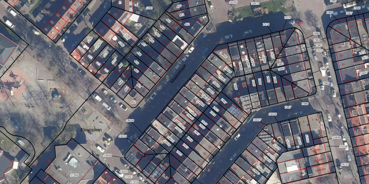Het perceel waarop Maasstraat 40 staat heeft een oppervlakte van 83 m². Dit is een klein perceel. De perceeloppervlakte wordt geregistreerd door het Kadaster. Gedetailleerde informatie over de maten van dit perceel kunt u vinden in het rapport Kadastrale kaart met maatvoering van Maasstraat 40.