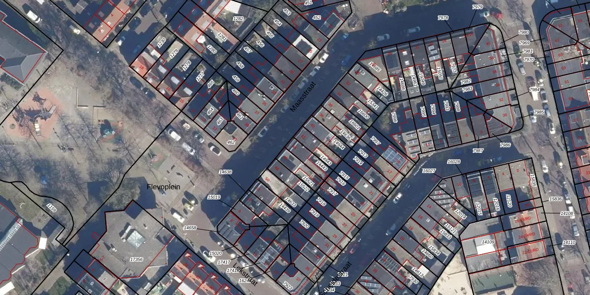 Het perceel waarop Maasstraat 44 staat heeft een oppervlakte van 83 m². Dit is een klein perceel. De perceeloppervlakte wordt geregistreerd door het Kadaster. Gedetailleerde informatie over de maten van dit perceel kunt u vinden in het rapport Kadastrale kaart met maatvoering van Maasstraat 44.