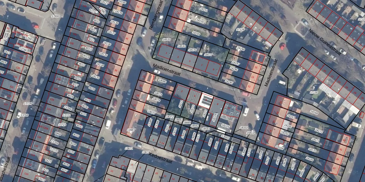 Het perceel waarop Madioenstraat 2 staat heeft een oppervlakte van 135 m². Dit is een middelgroot perceel. De perceeloppervlakte wordt geregistreerd door het Kadaster. Gedetailleerde informatie over de maten van dit perceel kunt u vinden in het rapport Kadastrale kaart met maatvoering van Madioenstraat 2.