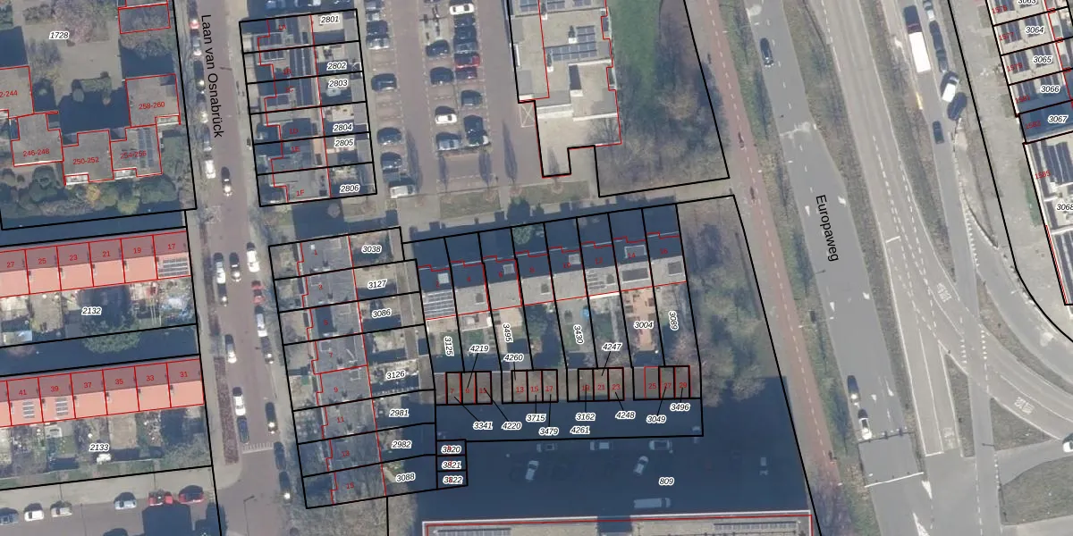 Het perceel waarop Madridplantsoen 8 staat heeft een oppervlakte van 897 m². Dit is een groot perceel. De perceeloppervlakte wordt geregistreerd door het Kadaster. Gedetailleerde informatie over de maten van dit perceel kunt u vinden in het rapport Kadastrale kaart met maatvoering van Madridplantsoen 8.