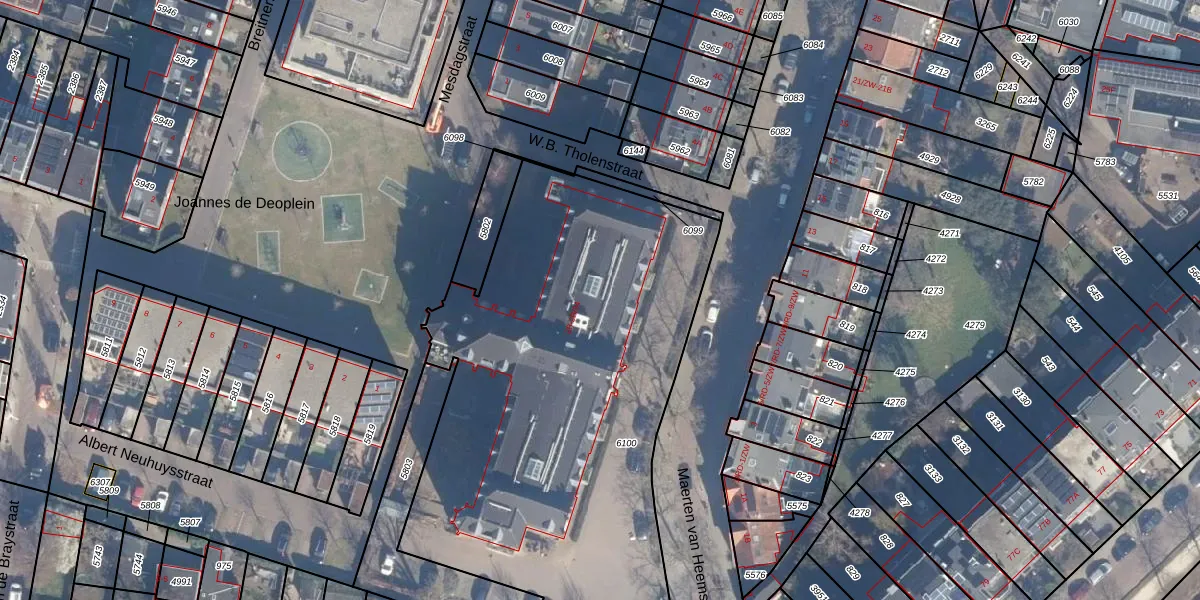 Het perceel waarop Maerten van Heemskerckstraat 2-B-13 staat heeft een oppervlakte van 2839 m². Dit is een zeer groot perceel. De perceeloppervlakte wordt geregistreerd door het Kadaster. Gedetailleerde informatie over de maten van dit perceel kunt u vinden in het rapport Kadastrale kaart met maatvoering van Maerten van Heemskerckstraat 2-B-13.