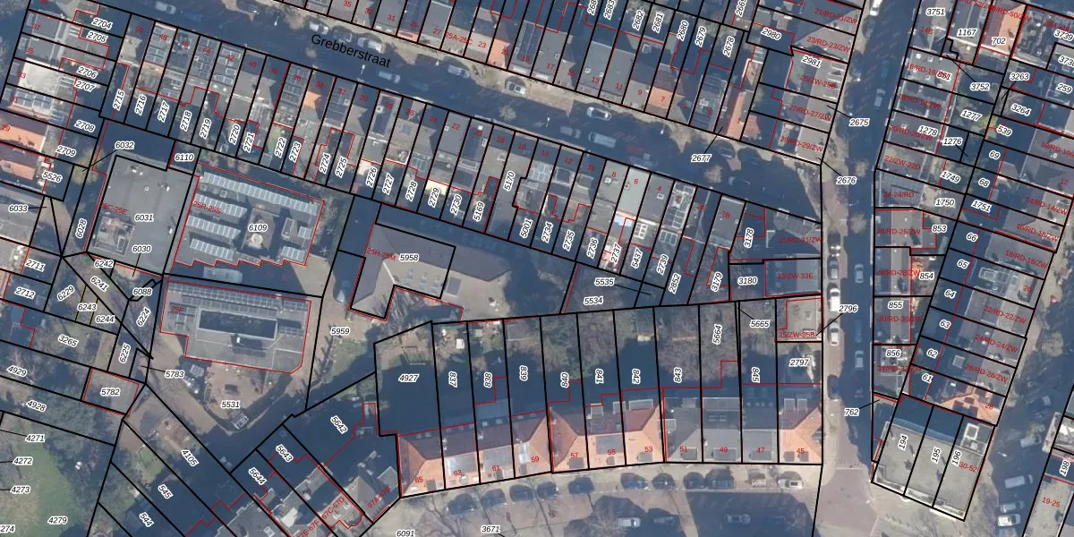 Het adres is gelegen op perceel 5959 in de sectie A en de kadastrale gemeente Haarlem. De kadastrale aanduiding is aldus HLM01-A-5959. Het perceel is met 685 m² relatief groot. Het gemiddelde ligt in de kadastrale gemeente Haarlem op 328,17 m². De grootste perceeloppervlakte in de kadastrale gemeente is 13,9 ha. De kleinste oppervlakte bedraagt 0 m². Op het perceel zijn 4 adressen aanwezig. De huidige grenzen van het perceel zijn digitaal in de Basisregistratie Kadaster (BRK) geregistreerd op 13-11-2012.