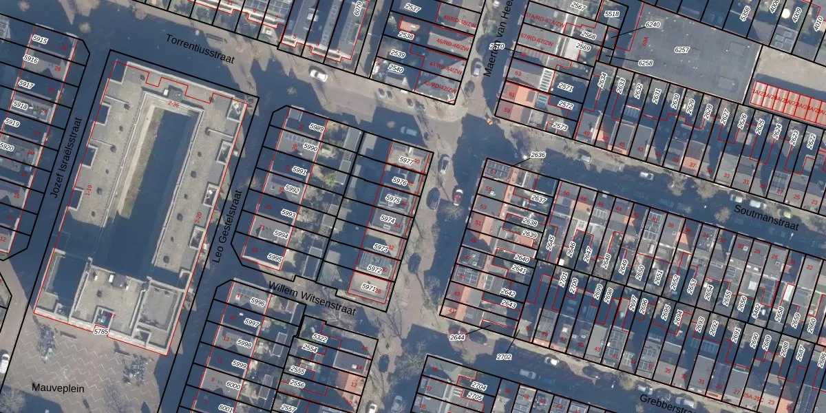 Het perceel waarop Maerten van Heemskerckstraat 36 staat heeft een oppervlakte van 97 m². Dit is een klein perceel. De perceeloppervlakte wordt geregistreerd door het Kadaster. Gedetailleerde informatie over de maten van dit perceel kunt u vinden in het rapport Kadastrale kaart met maatvoering van Maerten van Heemskerckstraat 36.