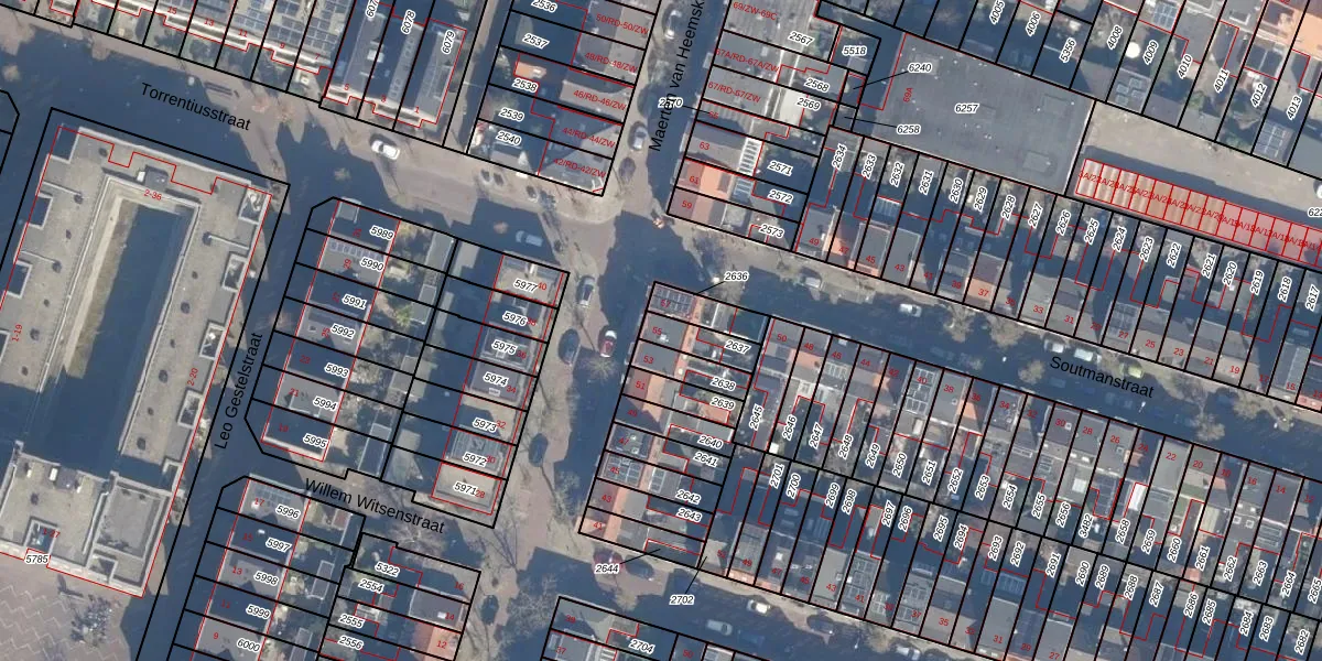 Het perceel waarop Maerten van Heemskerckstraat 55 staat heeft een oppervlakte van 80 m². Dit is een klein perceel. De perceeloppervlakte wordt geregistreerd door het Kadaster. Gedetailleerde informatie over de maten van dit perceel kunt u vinden in het rapport Kadastrale kaart met maatvoering van Maerten van Heemskerckstraat 55.