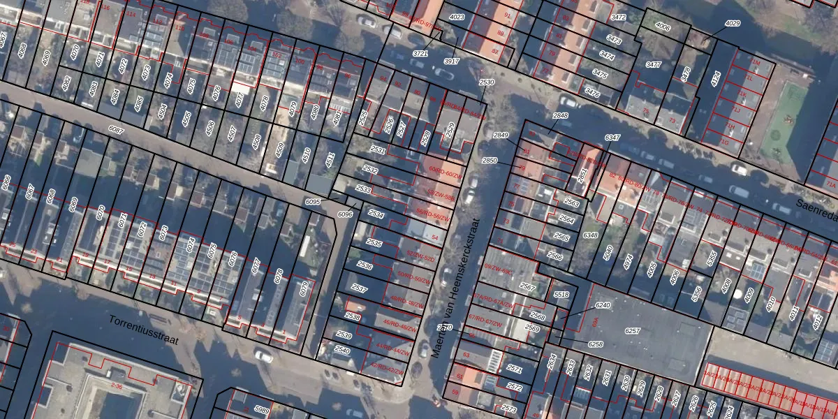 Maerten van Heemskerckstraat 56-RD is gelegen op kadastraal perceel HLM01A2533. Deze kadastrale aanduiding is uniek en wordt gebruikt door het Kadaster om eigendomsrechten en andere zakelijke rechten vast te leggen. Het perceel maakt onderdeel uit van de kadastrale gemeente Haarlem.
