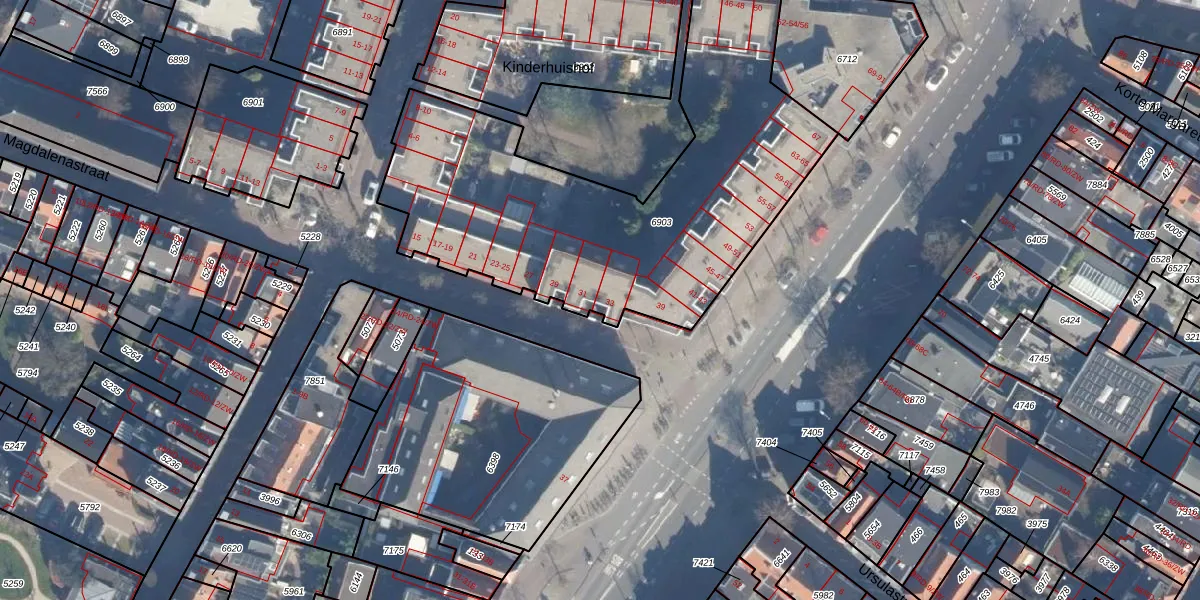 Het perceel waarop Magdalenastraat 33 staat heeft een oppervlakte van 2040 m². Dit is een zeer groot perceel. De perceeloppervlakte wordt geregistreerd door het Kadaster. Gedetailleerde informatie over de maten van dit perceel kunt u vinden in het rapport Kadastrale kaart met maatvoering van Magdalenastraat 33.
