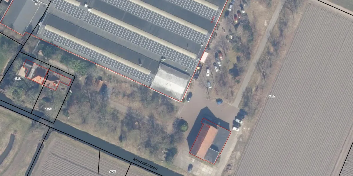 Het perceel waarop Marcelisvaartpad 11-A staat heeft een oppervlakte van 2,3 ha. Dit is een zeer groot perceel. De perceeloppervlakte wordt geregistreerd door het Kadaster. Gedetailleerde informatie over de maten van dit perceel kunt u vinden in het rapport Kadastrale kaart met maatvoering van Marcelisvaartpad 11-A.