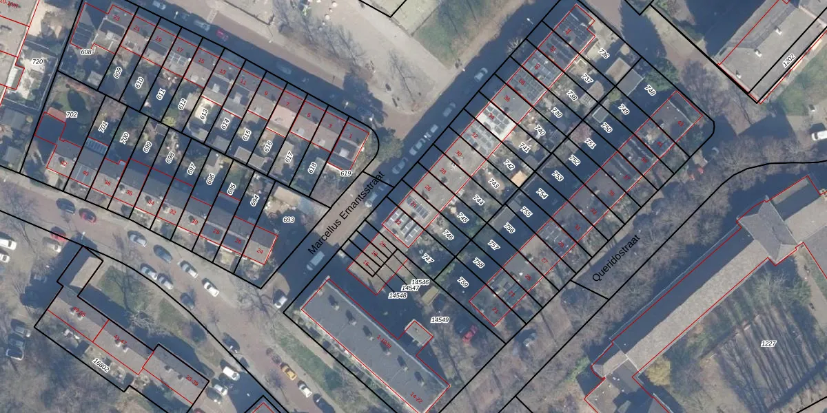 Gebruik de zoekbalk of klik op een perceel voor informatie over de adressen binnen dit perceel.