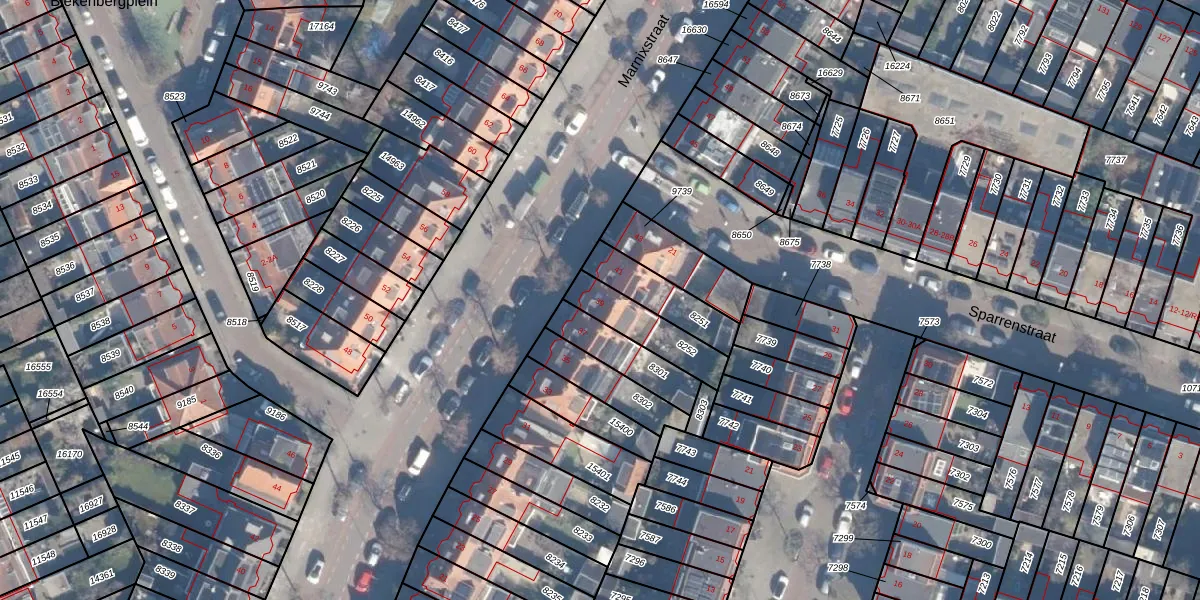 Het perceel waarop Marnixstraat 39 staat heeft een oppervlakte van 164 m². Dit is een middelgroot perceel. De perceeloppervlakte wordt geregistreerd door het Kadaster. Gedetailleerde informatie over de maten van dit perceel kunt u vinden in het rapport Kadastrale kaart met maatvoering van Marnixstraat 39.