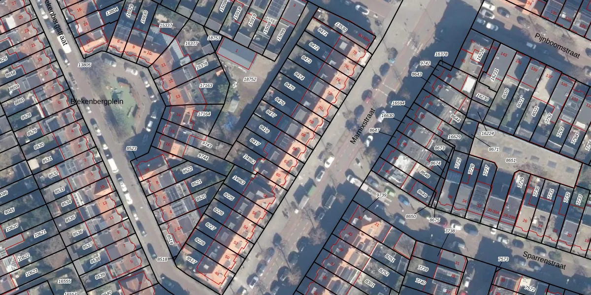 Het perceel waarop Marnixstraat 64 staat heeft een oppervlakte van 131 m². Dit is een middelgroot perceel. De perceeloppervlakte wordt geregistreerd door het Kadaster. Gedetailleerde informatie over de maten van dit perceel kunt u vinden in het rapport Kadastrale kaart met maatvoering van Marnixstraat 64.