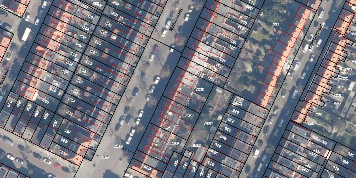 Het perceel waarop Marnixstraat 83 staat heeft een oppervlakte van 435 m². Dit is een groot perceel. De perceeloppervlakte wordt geregistreerd door het Kadaster. Gedetailleerde informatie over de maten van dit perceel kunt u vinden in het rapport Kadastrale kaart met maatvoering van Marnixstraat 83.