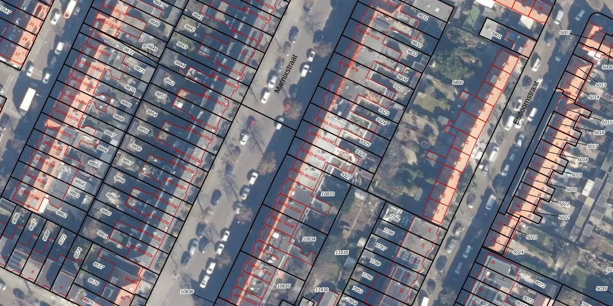 Het perceel waarop Marnixstraat 87-ZW staat heeft een oppervlakte van 184 m². Dit is een middelgroot perceel. De perceeloppervlakte wordt geregistreerd door het Kadaster. Gedetailleerde informatie over de maten van dit perceel kunt u vinden in het rapport Kadastrale kaart met maatvoering van Marnixstraat 87-ZW.