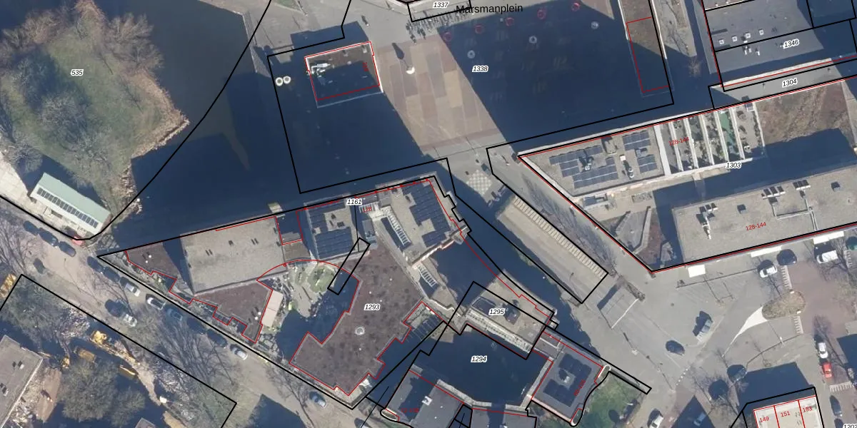 Het perceel waarop Marsmanplein 124 staat heeft een oppervlakte van 2608 m². Dit is een zeer groot perceel. De perceeloppervlakte wordt geregistreerd door het Kadaster. Gedetailleerde informatie over de maten van dit perceel kunt u vinden in het rapport Kadastrale kaart met maatvoering van Marsmanplein 124.