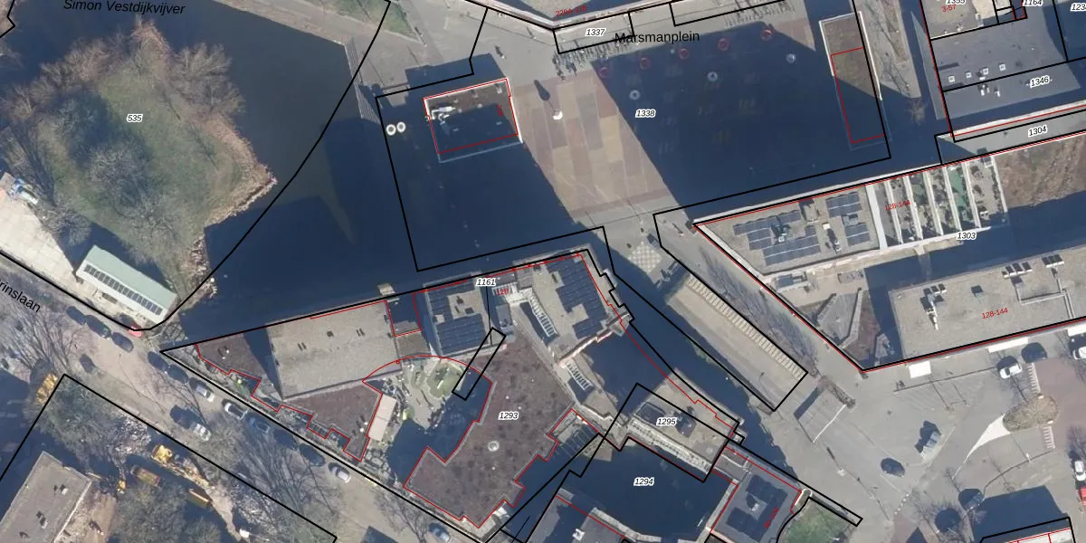 Het perceel waarop Marsmanplein 138 staat heeft een oppervlakte van 2608 m². Dit is een zeer groot perceel. De perceeloppervlakte wordt geregistreerd door het Kadaster. Gedetailleerde informatie over de maten van dit perceel kunt u vinden in het rapport Kadastrale kaart met maatvoering van Marsmanplein 138.