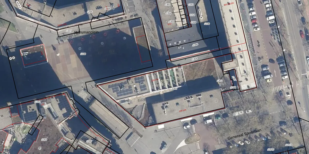 Het perceel waarop Marsmanplein 14 staat heeft een oppervlakte van 2364 m². Dit is een zeer groot perceel. De perceeloppervlakte wordt geregistreerd door het Kadaster. Gedetailleerde informatie over de maten van dit perceel kunt u vinden in het rapport Kadastrale kaart met maatvoering van Marsmanplein 14.
