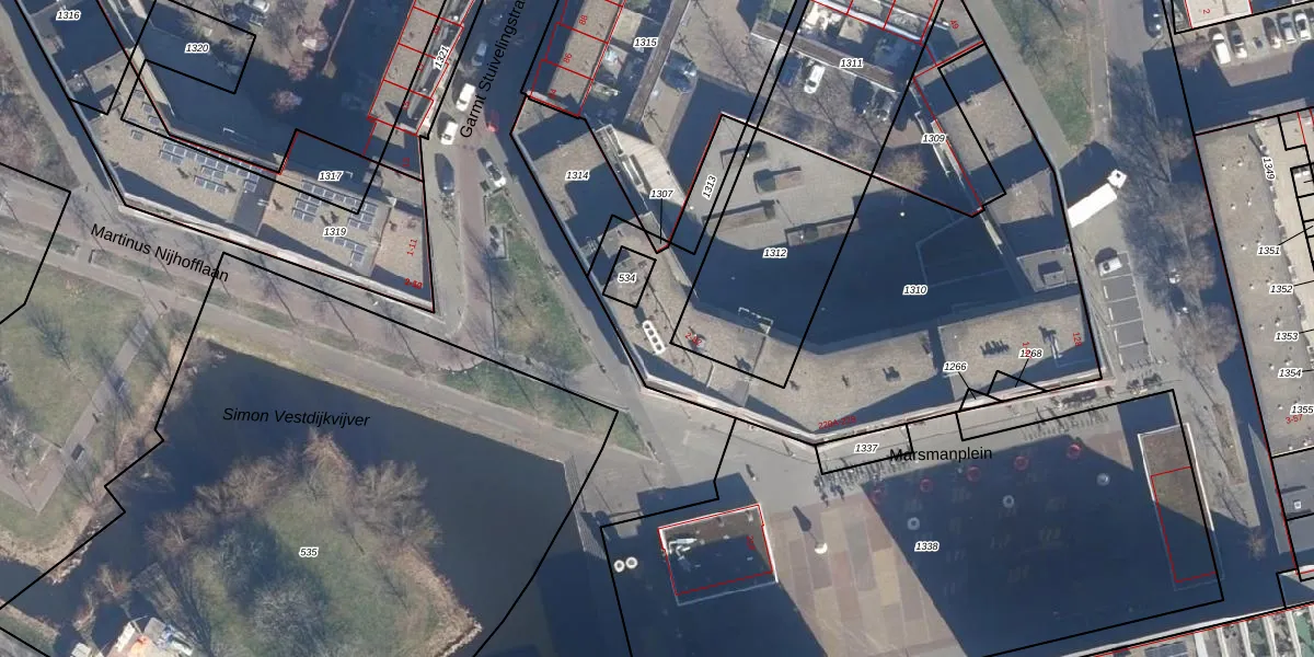 Het perceel waarop Marsmanplein 220-A staat heeft een oppervlakte van 1850 m². Dit is een zeer groot perceel. De perceeloppervlakte wordt geregistreerd door het Kadaster. Gedetailleerde informatie over de maten van dit perceel kunt u vinden in het rapport Kadastrale kaart met maatvoering van Marsmanplein 220-A.