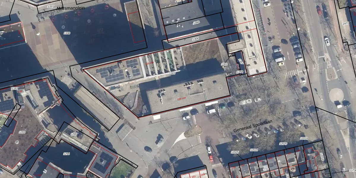 Het perceel waarop Marsmanplein 48 staat heeft een oppervlakte van 2364 m². Dit is een zeer groot perceel. De perceeloppervlakte wordt geregistreerd door het Kadaster. Gedetailleerde informatie over de maten van dit perceel kunt u vinden in het rapport Kadastrale kaart met maatvoering van Marsmanplein 48.