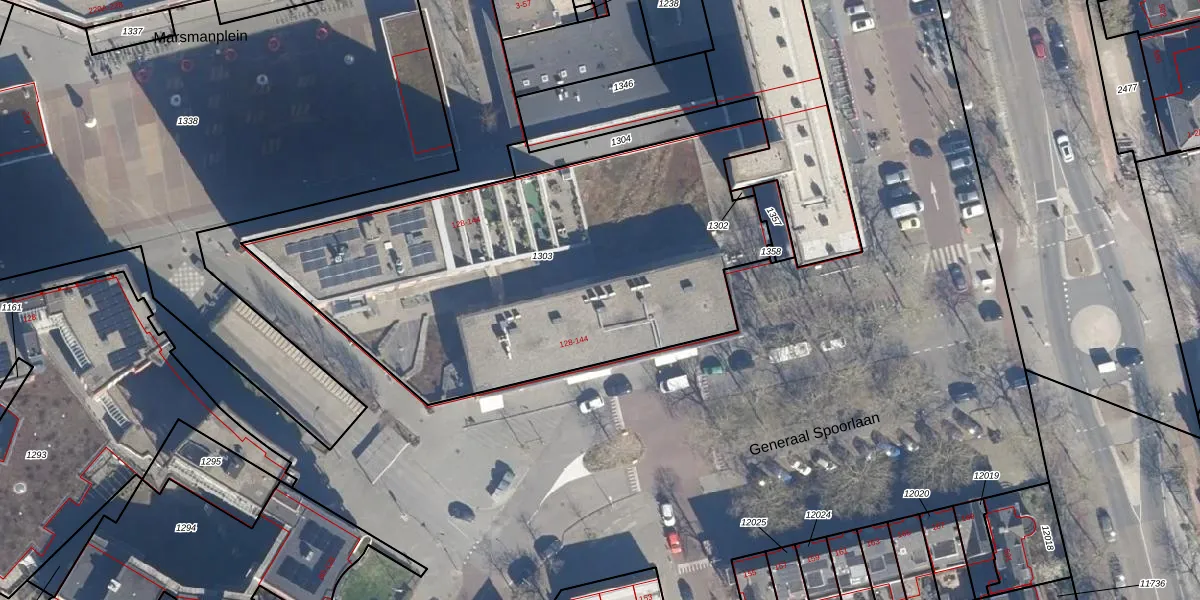 Het perceel waarop Marsmanplein 50 staat heeft een oppervlakte van 2364 m². Dit is een zeer groot perceel. De perceeloppervlakte wordt geregistreerd door het Kadaster. Gedetailleerde informatie over de maten van dit perceel kunt u vinden in het rapport Kadastrale kaart met maatvoering van Marsmanplein 50.