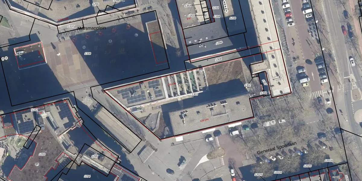 Het perceel waarop Marsmanplein 54 staat heeft een oppervlakte van 2364 m². Dit is een zeer groot perceel. De perceeloppervlakte wordt geregistreerd door het Kadaster. Gedetailleerde informatie over de maten van dit perceel kunt u vinden in het rapport Kadastrale kaart met maatvoering van Marsmanplein 54.
