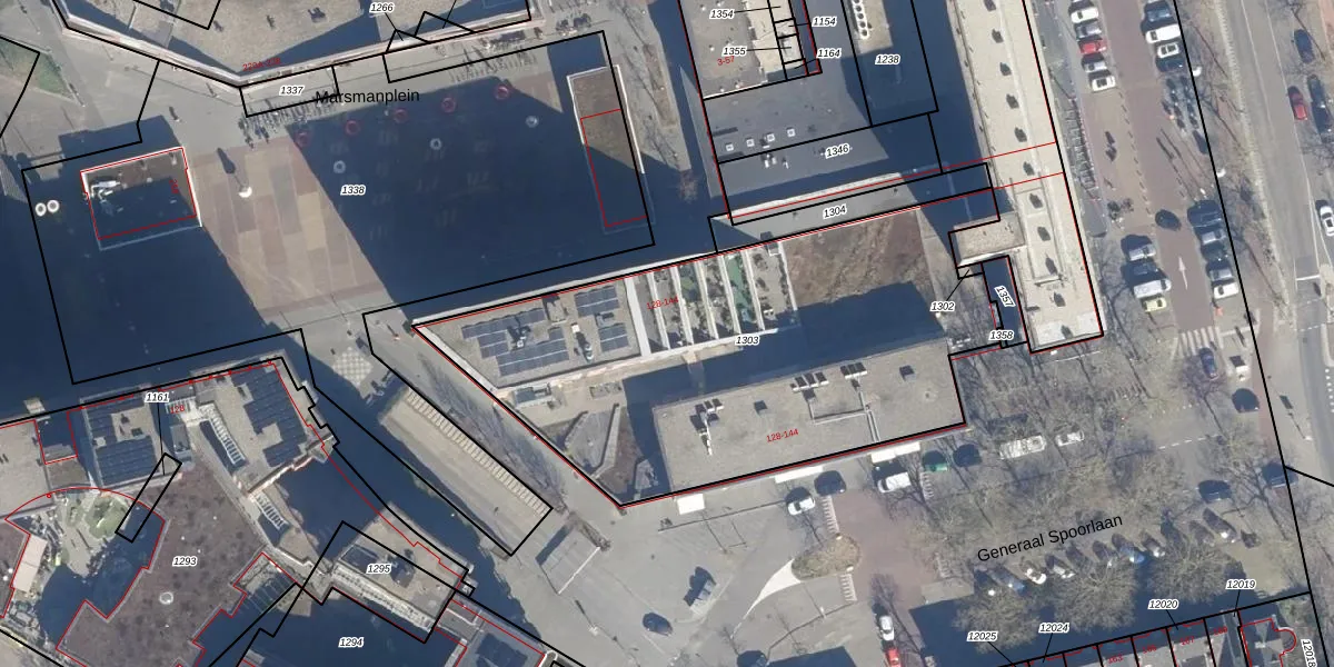 Het perceel waarop Marsmanplein 56 staat heeft een oppervlakte van 2364 m². Dit is een zeer groot perceel. De perceeloppervlakte wordt geregistreerd door het Kadaster. Gedetailleerde informatie over de maten van dit perceel kunt u vinden in het rapport Kadastrale kaart met maatvoering van Marsmanplein 56.