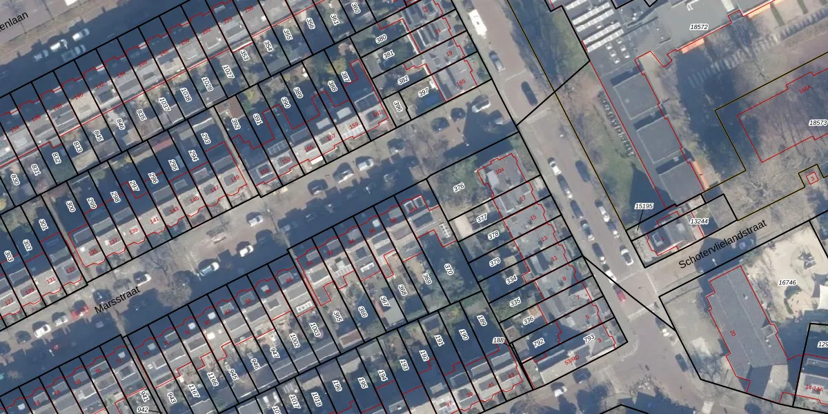 Het perceel waarop Marsstraat 100 staat heeft een oppervlakte van 256 m². Dit is een middelgroot perceel. De perceeloppervlakte wordt geregistreerd door het Kadaster. Gedetailleerde informatie over de maten van dit perceel kunt u vinden in het rapport Kadastrale kaart met maatvoering van Marsstraat 100.