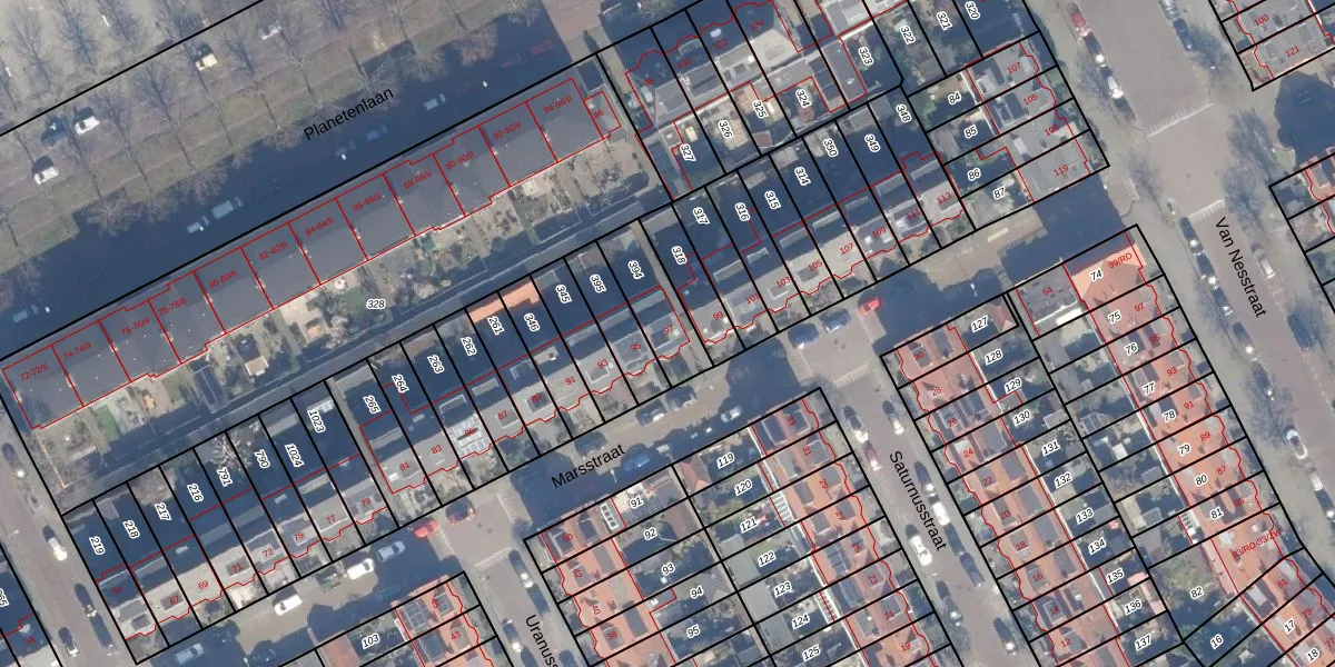 Gebruik de zoekbalk of klik op een perceel voor informatie over de adressen binnen dit perceel.