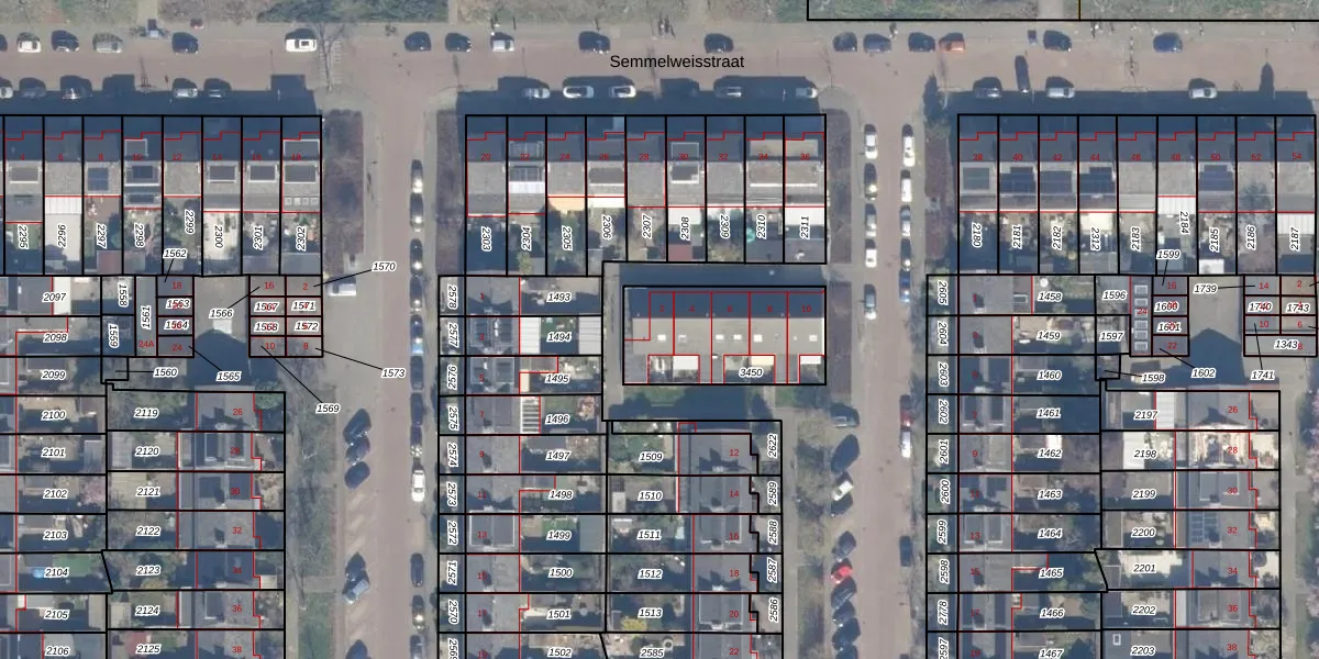 Het perceel waarop Mathijsenstraat 2 staat heeft een oppervlakte van 459 m². Dit is een groot perceel. De perceeloppervlakte wordt geregistreerd door het Kadaster. Gedetailleerde informatie over de maten van dit perceel kunt u vinden in het rapport Kadastrale kaart met maatvoering van Mathijsenstraat 2.